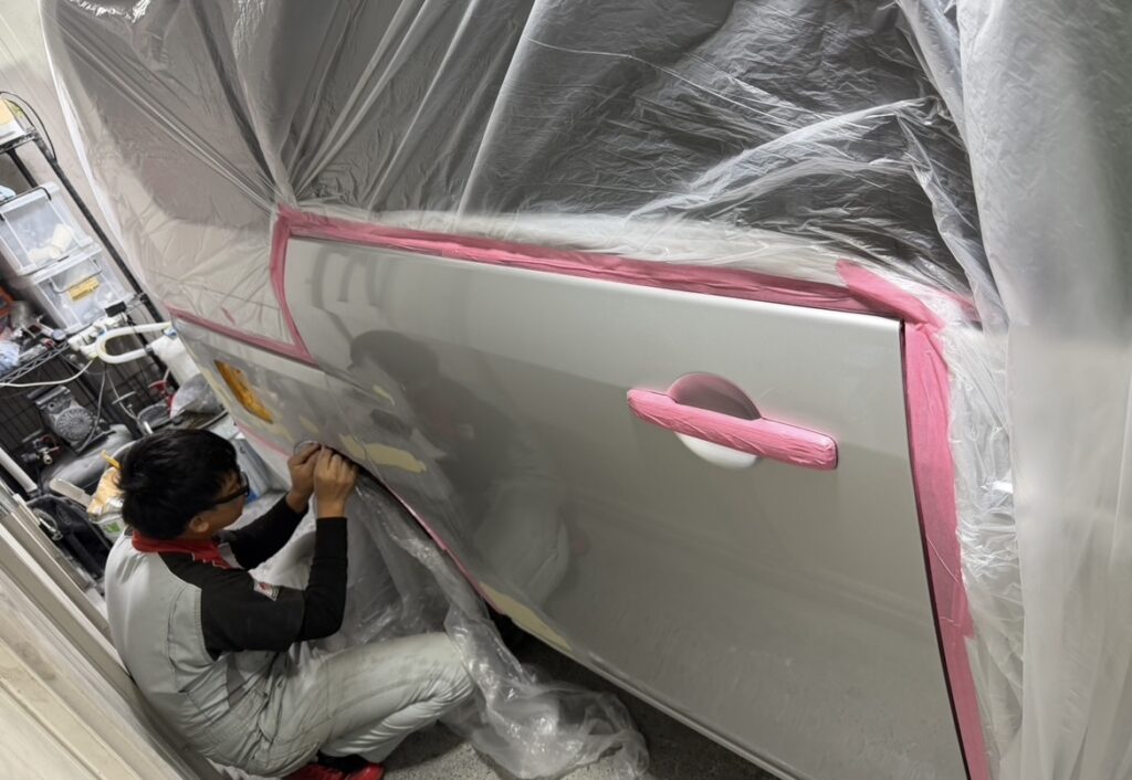 鈑金塗装ブース完備。急な事故やぶつけてしまった時もお修理可能です。保険修理もご対応可能。代車200台以上の準備があります。