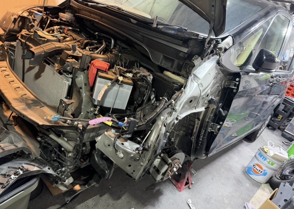 フリードが身体的には大きな怪我がなく幸いでしたが車はなかなかの損傷でした。入庫から完成まで約1ヶ月かかりました。もちろん代車をお出ししています。どんな修理特典をおつけできたのか、、、